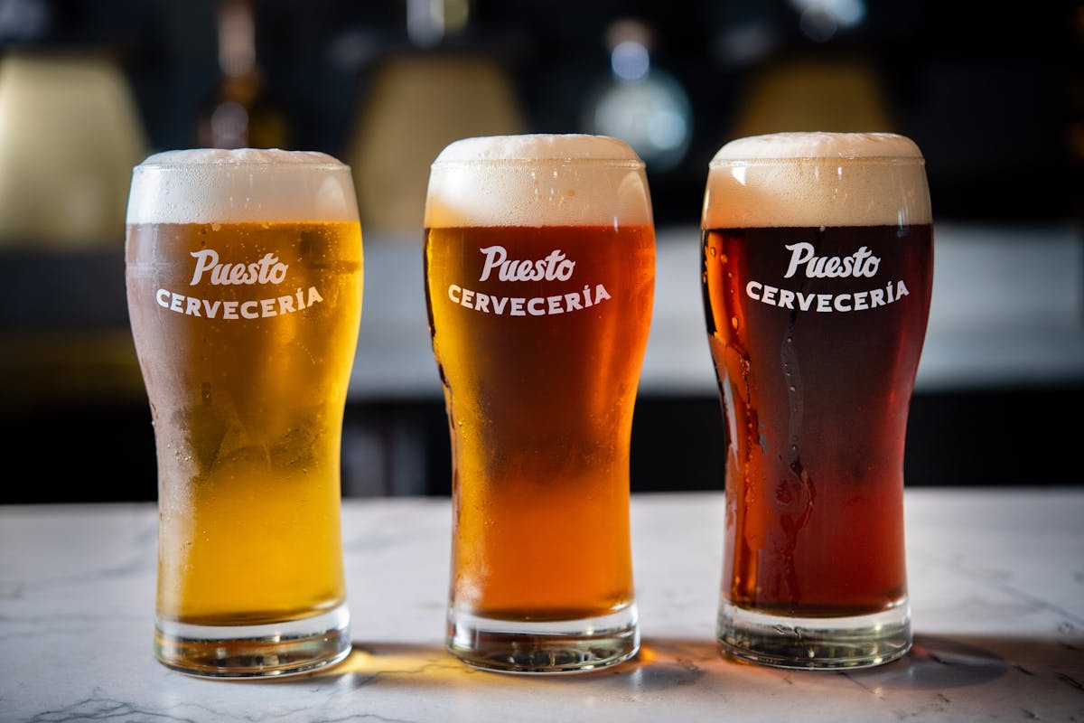 Modeled off the traditional lager style, our signature Mexican Lagers are refreshing and malt forward. The Puesto Mexican Lager is a traditional, well-balanced and bright golden lager, with a crispy malt flavor from malted barley and hints of corn. The resulting beer has a medium bitterness from noble German hops with a clean finish. The Puesto Mexican Amber is a lager beer, paying homage to the early days of brewing in Mexico by using Vienna malts and corn for its light delicious body. Balanced with a subtle hopping of German hops for bitterness with a smooth and refreshing finish.The Puesto Mexican Negra Lager is a dark Mexican lager brewed using darker, roasted malts that is rich in flavor with a smooth and enjoyable finish.